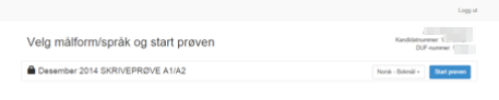 Når alle er logget inn klikker de på skriveprøven, velger målform og klikker deretter på Start prøven.