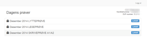 Om alle prøvene er gjennomført skal alle delprøvene nå være markert som Levert. Dersom en eller flere av delprøvene ikke er markert med Levert, vil det bety at den aktuelle delprøven ikke er levert på korrekt måte. Kandidaten må da, under prøveleders oppsyn, gå inn på prøven med korrekt dagspassord og levere prøven på korrekt vis.